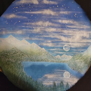 Puis, quand j’ai réalisé votre peinture, je vous envoie une photo pour confirmation avant de la coudre ensuite à la taille de votre tambour.