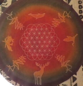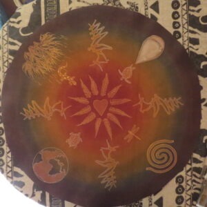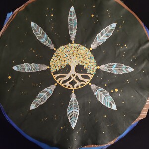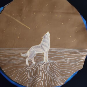 Création d’un sac en cuir pour votre tambour chamanique, médecine, océan sur mesure avec une peinture personnalisée co-crée avec vous.